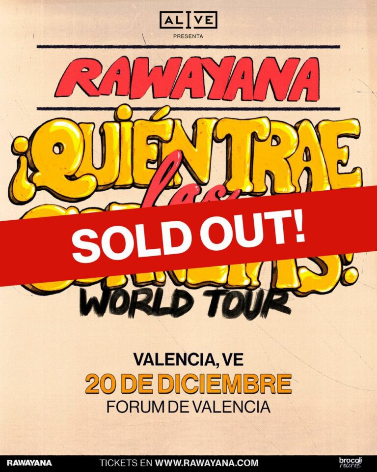Este jueves, la reconocida productora y promotora de eventos ALIVE anunció, por medio de sus redes sociales, que las entradas para el gran concierto de Rawayana en el Forum de Valencia se encuentran completamente agotadas.