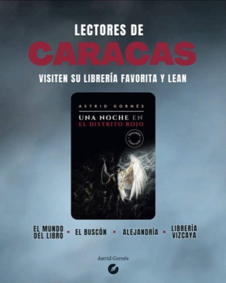 Una noche en el Distrito Rojo está disponible en las librerías El Mundo del Libro, El Buscón, Alejandría, Librería Vizcaya de Caracas – Venezuela, Tecni – Ciencia Libros, y en el siguiente link https://linktr.ee/gornesaverso.