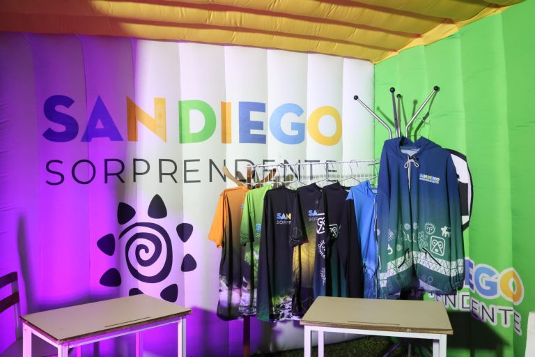 Agregó el alcalde que, desde la dirección de Cultura, Educación y Turismo, se viene haciendo un trabajo importante en materia de turismo para realzar nuestras raíces. En ese sentido, nuestros artesanos tienen un lugar en el bazar ofreciendo orfebrería de calidad, mientras que el stand de “San Diego Sorprendente” encontrará franelas deportivas, chaquetas cortaviento y tazas para beber café con emblemas o una composición artística que identifica al municipio.