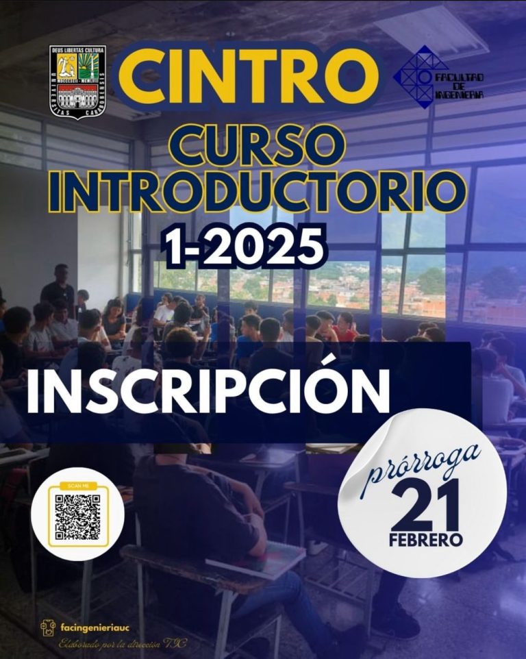 A través de su cuenta de Instagram la Facultad de Ingeniería de la Universidad de Carabobo @facingenieriauc informó que se extendió el proceso de inscripción al Curso Introductorio hasta el 21 de febrero.
