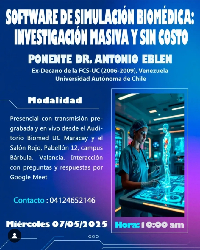 A través de su cuenta de Instagram @fcs_uc, la Facultad de Ciencias de la Salud de la Universidad de Carabobo, informó sobre la Ponencia denominada “Software de Simulación Biomédica: Investigación masiva y sin costo”, que se realizará el próximo miércoles 07 de mayo. La actividad iniciará a las 10:00 de la mañana en el Pabellón […]