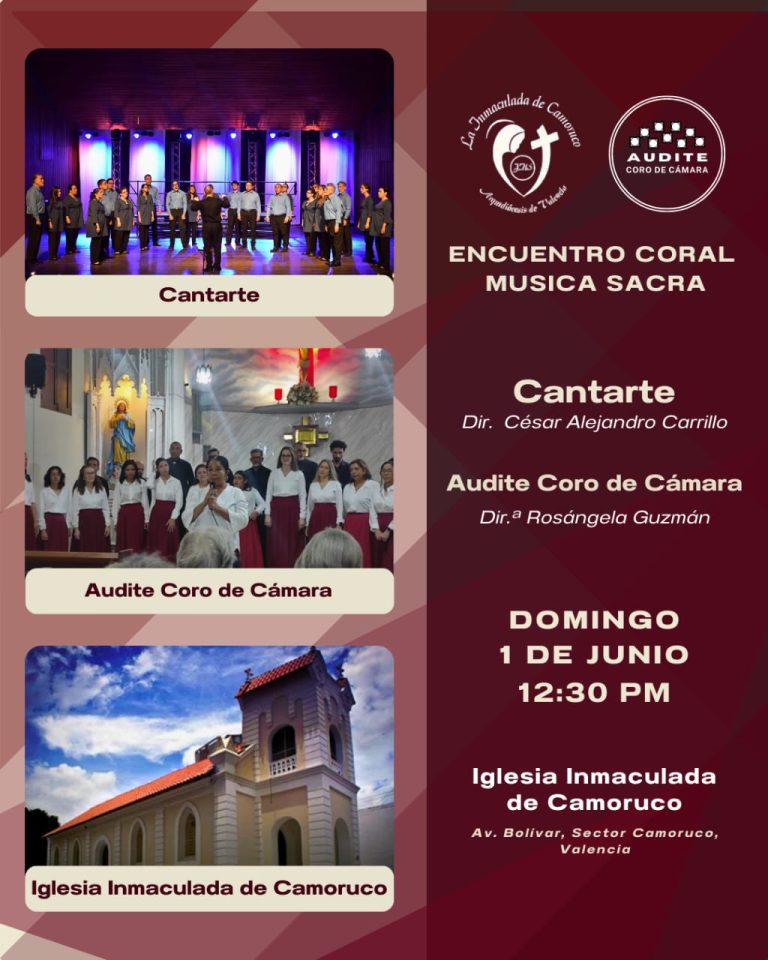 Los esperamos a disfrutar de esta programación realizada conjuntamente con la Parroquia Inmaculada de Camoruco. Asiste este domingo 1º de junio a las 12:30 pm. La entrada es gratuita.