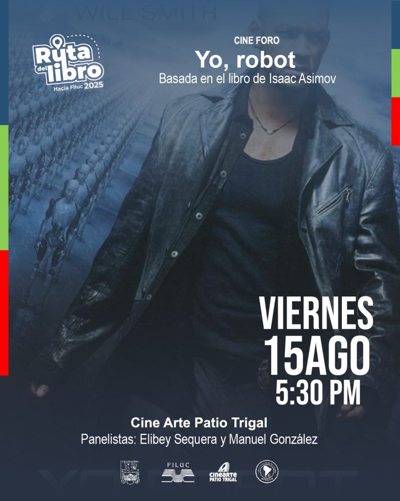 La Feria Internacional del Libro de la Universidad de Carabobo, Filuc 2025, invita este viernes 15 de agosto al Cine-Foro «Yo, robot» (basada en el libro de Isaac Asimov). Se trata de una actividad planificada en el marco de la programación de la Ruta del Libro #HaciaFiluc 2025. «Yo, robot» es una película del año 2004 que narra la historia […]