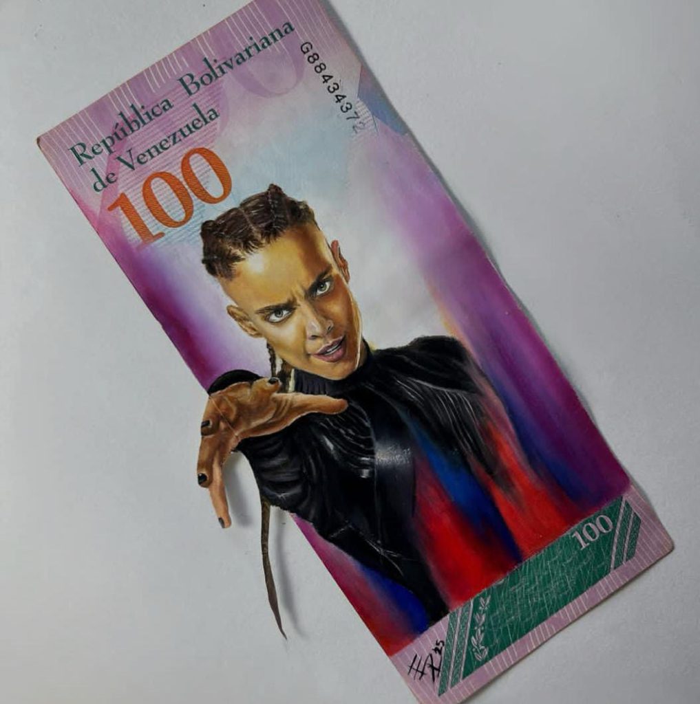 Elianni, quién es egresada de la Universidad de Carabobo (UC) llevará consigo sus ya icónicos “billetes pintados”, una propuesta artística que transforma la moneda devaluada del país en lienzos cargados de significado.