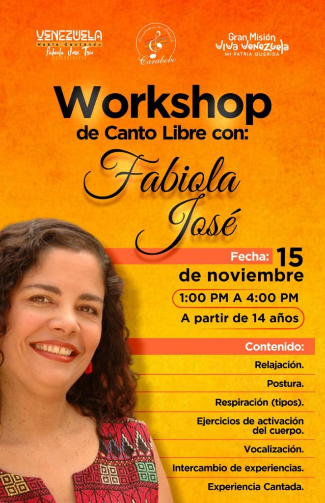El cronograma de actividades iniciará el sábado 15 con el Taller de Canto Libre, dirigido a estudiantes del Conservatorio de Música de Carabobo e interesados mayores de 14 años de edad, quienes deben inscribirse a través de la página web: