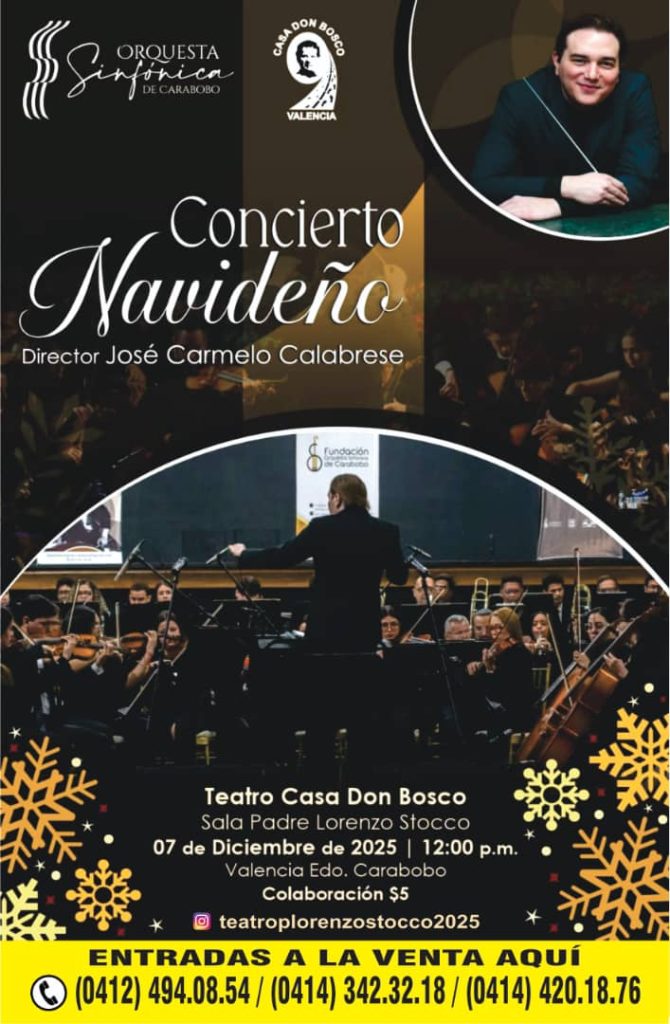 Este 7 de diciembre, la Orquesta Sinfónica de Carabobo te invita a un Concierto Navideño lleno de emoción, tradición y música que acaricia el alma. Este concierto benéfico tendrá lugar en el Teatro Casa Don Bosco, en la Sala Padre Lorenzo Stocco a las 12:00 p.m., el cual para ingresar deberá atribuir una colaboración de […]