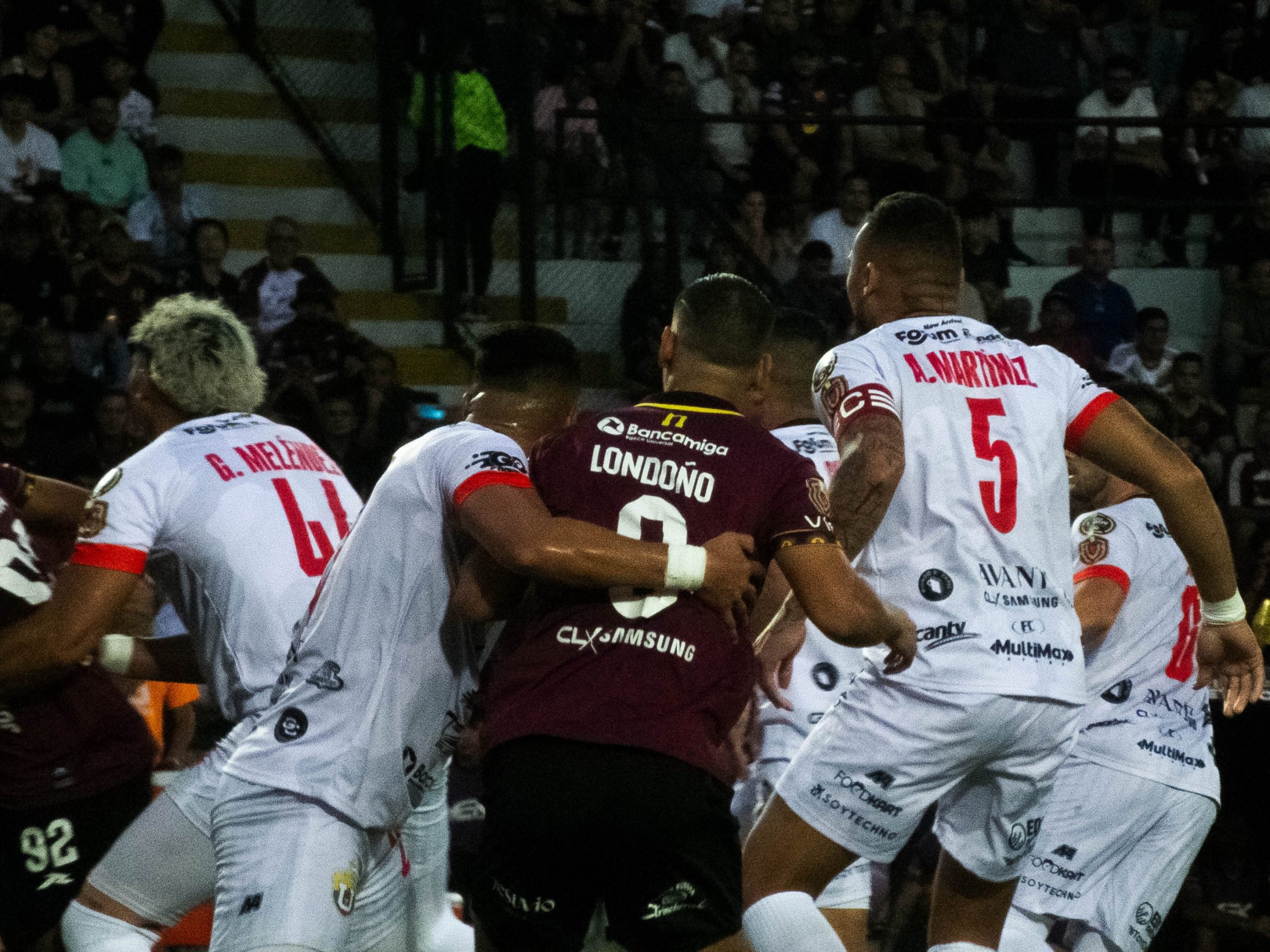 Tres minutos después el defensa granate Jean Fuentes, fue expulsado del partido tras acumular dos tarjetas amarillas, dejando al equipo carabobeño con tan solo 10 jugadores.
