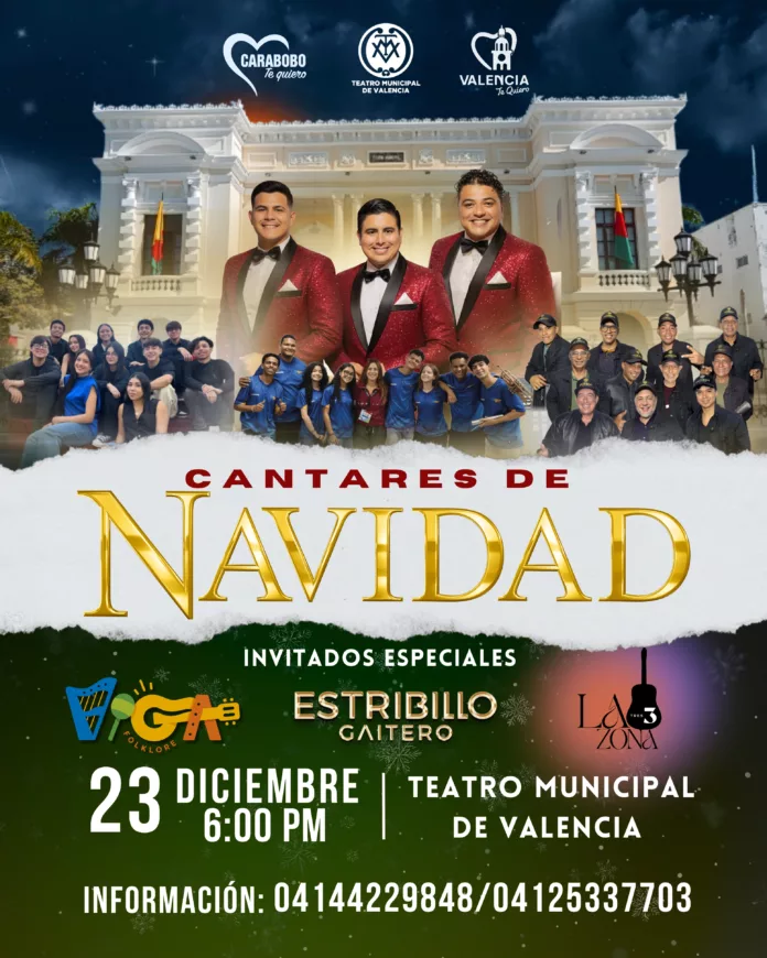 El emblemático Teatro Municipal de Valencia abrirá sus puertas el próximo 23 de diciembre a las 6:00 PM para celebrar una de las tradiciones musicales más queridas de la región, el gran evento «Cantares de Navidad» por la más popular de Venezuela, la Billos’s Caracas Boys.