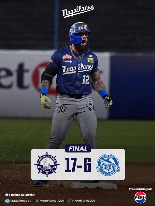 En un juego decisivo, como lo han sido todos en las últimas dos semanas, los Navegantes del Magallanes desplegaron todos los cañones disponibles en su ataque para imponerse de manera contundente a los Tiburones de La Guaira, con pizarra abultada de 17 carreras por 6, ante 12.862 aficionados presentes en el Estadio Universitario de Caracas.