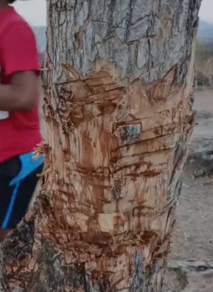 El árbol nacional presenta cortes progresivos en su corteza (descortezado), una acción vandálica detectada el pasado fin de semana que compromete seriamente su sistema circulatorio. Según expertos, de completarse el círculo del daño en el tronco (anillado), el ejemplar moriría por falta de nutrientes.