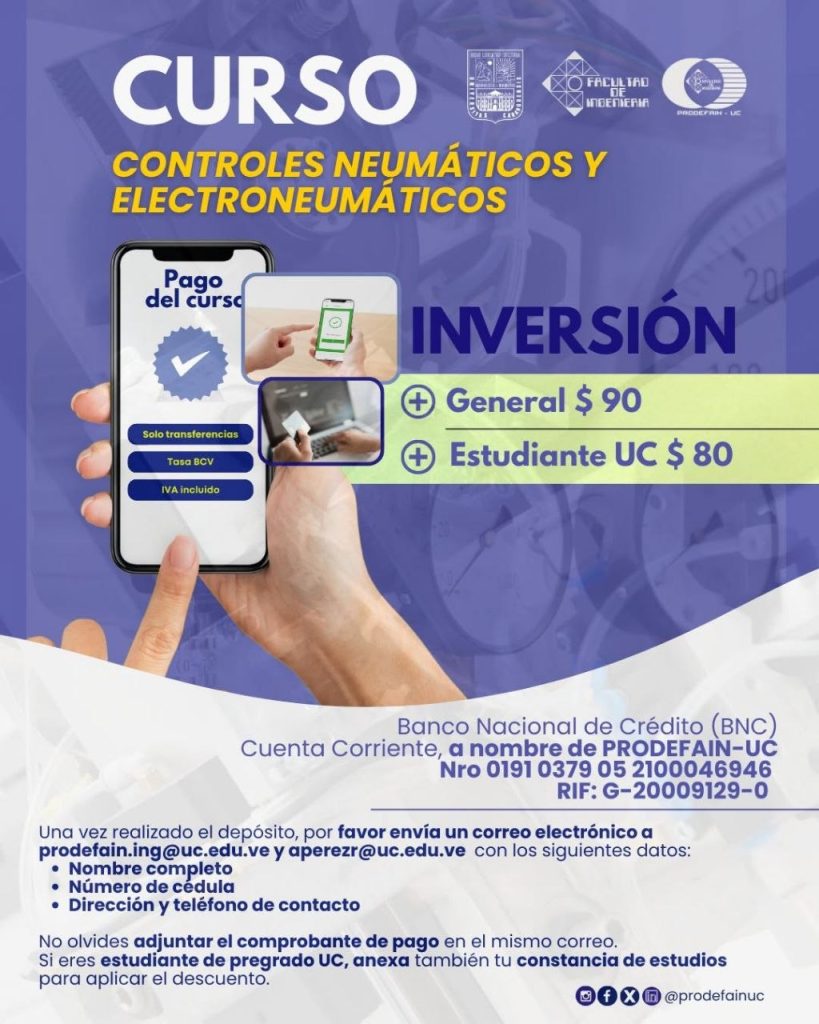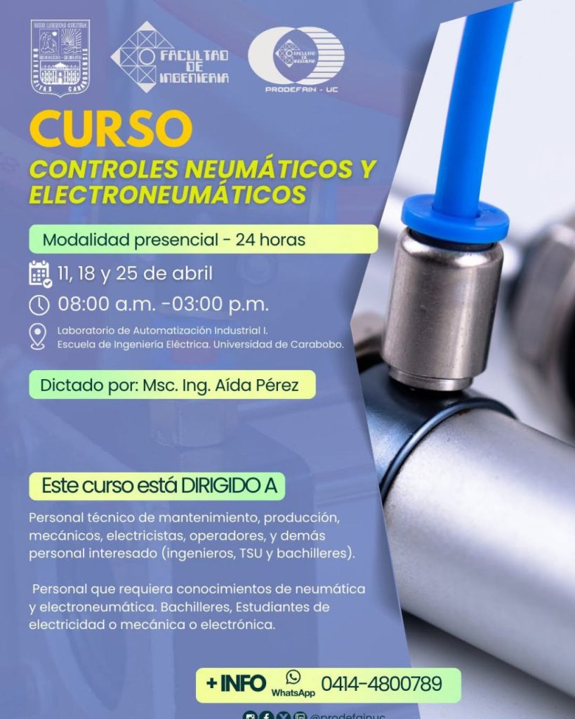 La Facultad de Ingeniería de la Universidad de Carabobo, a través de la Fundación de Promoción y Desarrollo (Prodefainuc), organizó el curso de Controles Neumáticos y Electroneumáticos, una iniciativa de formación técnica que busca fortalecer las capacidades operativas en el sector productivo regional.