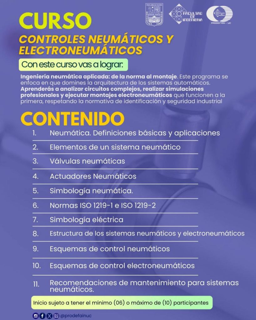 El programa, cuya sede será la Escuela de Ingeniería Eléctrica en el campus de Bárbula, se centra en la integración de sistemas neumáticos con tecnologías electrónicas, abordando desde la teoría normativa hasta la práctica intensiva en laboratorio para el análisis de circuitos complejos y el montaje de sistemas automáticos que garanticen la continuidad en las plantas de producción.