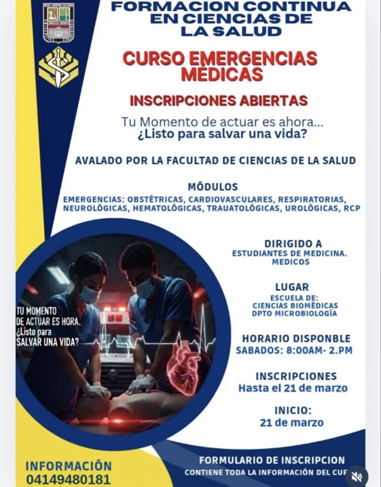 Bajo la premisa «Tu momento de actuar es ahora… ¿Listo para salvar una vida?», la Facultad de Ciencias de la Salud de la Universidad de Carabobo ha anunciado el lanzamiento de su nuevo programa de Formación Continua en Ciencias de la Salud, enfocado específicamente en el manejo de Emergencias Médicas. Este curso surge como una […]