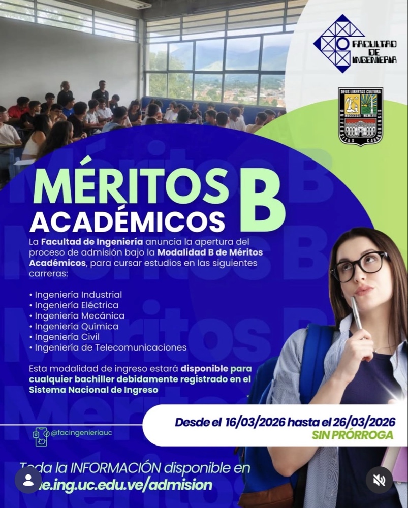 La Facultad de Ingeniería de la Universidad de Carabobo reafirma su compromiso con la captación de talentos de alto rendimiento al anunciar la apertura oficial de su proceso de admisión bajo la Modalidad B de Méritos Académicos. Este mecanismo está diseñado para reconocer la trayectoria estudiantil de los bachilleres y facilitar su ingreso a una […]