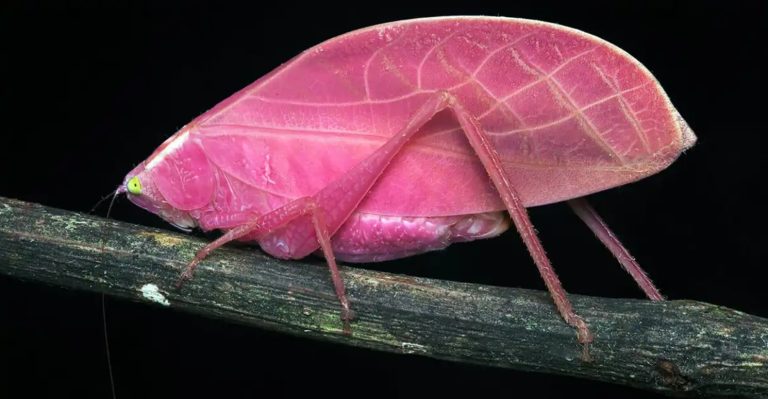 Descubren un insecto rosa que cambia de color para camuflarse entre las hojas
