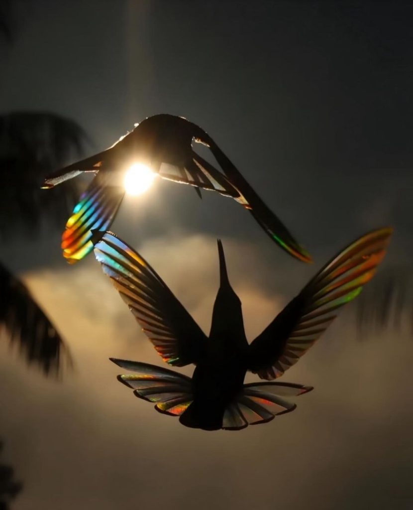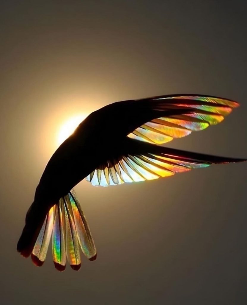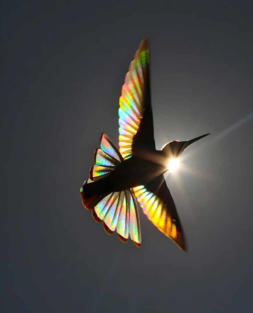 El colibrí, especie caracterizada por su capacidad de batir las alas decenas de veces por segundo para mantenerse suspendido o realizar maniobras de vuelo en retroceso, posee una anatomía formada por huesos ligeros y tejidos lo suficientemente finos como para permitir el paso de la luz bajo ángulos determinados, fenómeno físico que Spencer aisló para su serie fotográfica.