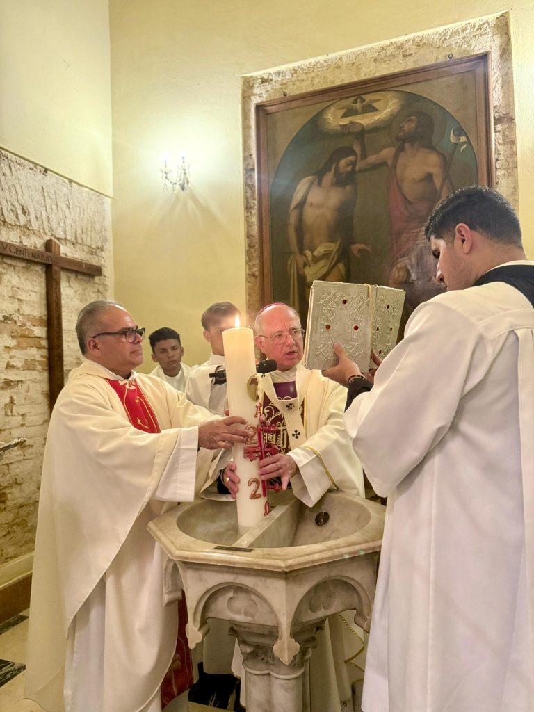 En una noche marcada por el simbolismo y la masiva participación de la feligresía, la Basílica Catedral de Valencia fue el epicentro de la Solemne Vigilia Pascual 2026. El Arzobispo de la ciudad, S.E. Mons. Jesús González de Zárate Salas, presidió la «Madre de todas las vigilias», junto al padre Joel Núñez; enviando un contundente mensaje de renovación y misión a toda la sociedad carabobeña.