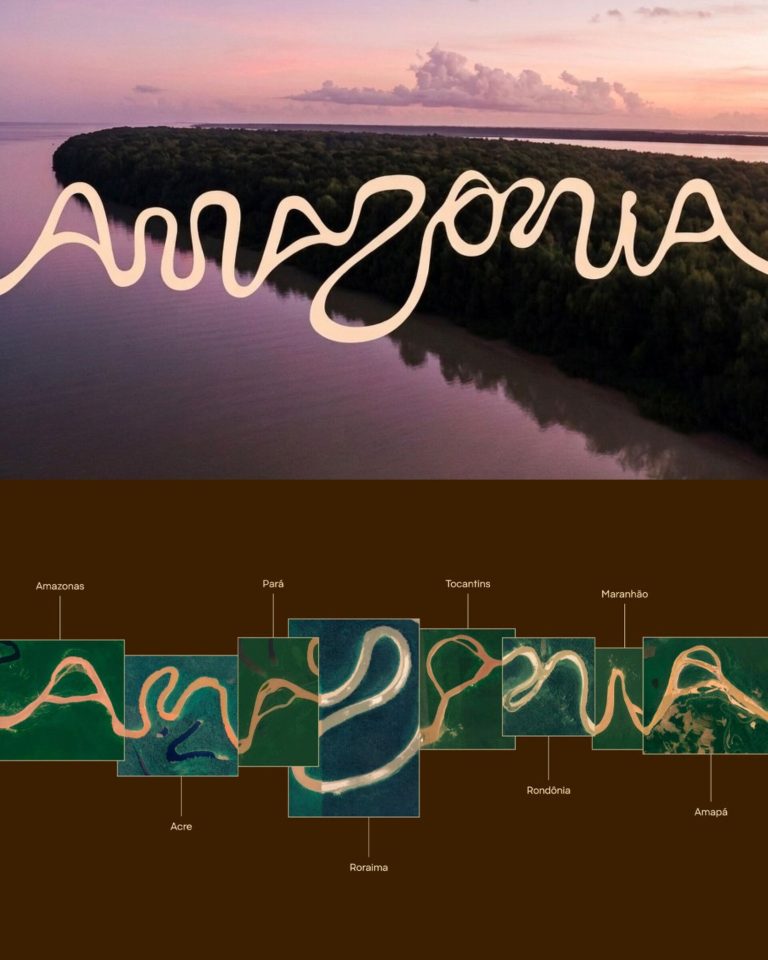La identidad visual, desarrollada por la firma FutureBrand São Paulo, fundamenta su propuesta estética en la cartografía real del territorio, utilizando imágenes satelitales del río Amazonas y sus afluentes para dar forma a un alfabeto completo y a un logotipo que refleja los patrones naturales de la selva.