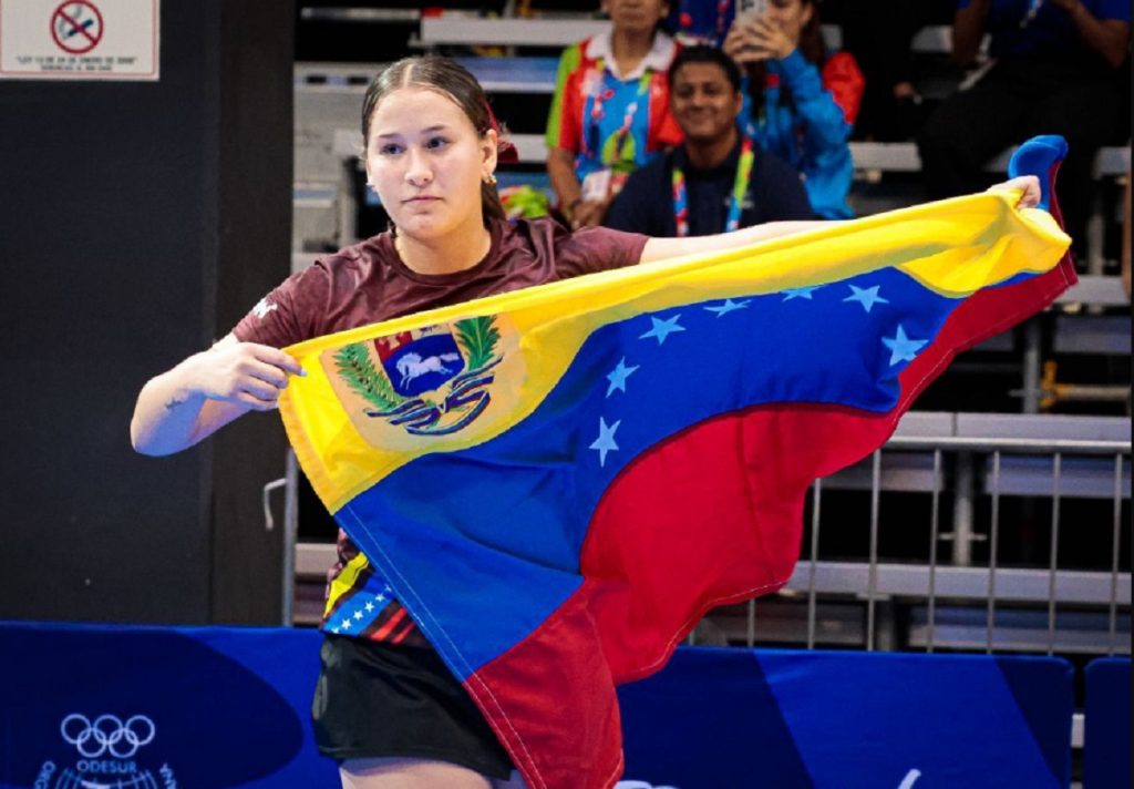 La joven venezolana Dakota Ferrer se colgó la medalla de oro tras vencer en la final de tenis de mesa a la brasileña Lana Ozeki. Con su presea, Venezuela acumula cinco medallas doradas en los IV Juegos Suramericanos de la Juventud 2026. Tras 35 minutos de juego, la caraqueña se hizo con la victoria por 4-1 (11-2, 11-9, […]