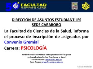 A través de su cuenta Instagram @fcs_uc la Facultad de Ciencias de la Salud de la Universidad de Carabobo, informó que está disponible el Proceso