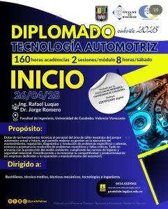 Este sábado 26 de abril inicia el Diplomado en “Tecnología Automotriz” en su cohorte 2025, en la Facultad de Ingeniería de la Universidad de Carabobo.