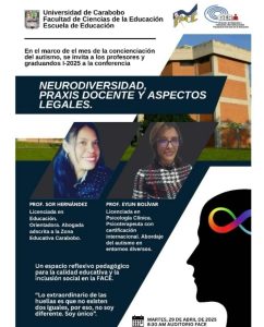 El próximo martes 29 de abril en los espacios del Auditorio de la Facultad de Ciencias de la Educación de la Universidad de Carabobo, se