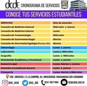 Atención estudiantes de la Universidad de Carabobo, la Dirección Central de Desarrollo Estudiantil informó a través de su cuenta de instagram @uc_dcde los servicios disponibles