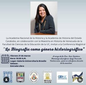 Este viernes 21 de marzo en la Galería Universitaria “Braulio Salazar” se realizará la Conferencia Magistral “La Biografía como género historiográfico”, que será dictada por