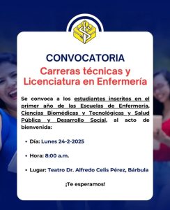 Atención estudiantes del 2do, 3ro y 4to año de las carreras de licenciatura y TSU de la Escuela de Enfermería de la Facultad de Ciencias