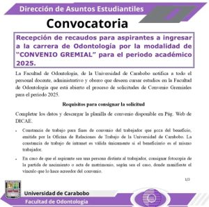 La Facultad de Odontología de la Universidad de Carabobo informó a través de su cuenta de Instagram @fac_odouc los recaudos necesarios para ingresar en la