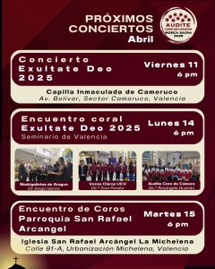 Audite Coro de Cámara invita a la comunidad valenciana a disfrutar de 3 hermosos conciertos que se realizarán durante la Semana Santa del 11 al