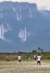 En Kamarata, un grupo de indígenas disfruta de un partido de fútbol, quizás sin percatarse de que su «cancha» es, sin duda, la más espectacular