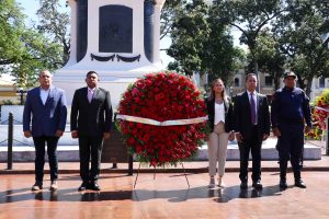 La alcaldesa de Naguanagua, Ana González, encabezó este martes 17 de diciembre una emotiva ofrenda floral, para conmemorar los 194 años del paso a la eternidad
