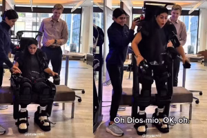 Joven libanesa-estadounidense vuelve a ponerse de pie con traje robótico tras una década en silla de ruedas