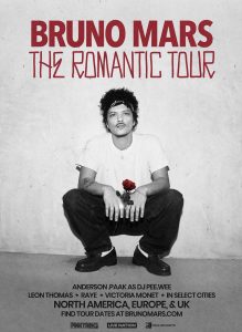 El cantante y compositor estadounidense Bruno Mars ha confirmado oficialmente las fechas de su próxima gira internacional, denominada «The Romantic Tour». El anuncio se realizó