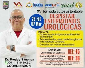 El 28 de febrero y 07 de marzo se realizará la XV Jornada Autosustentable de Despistaje de Enfermedades Urológicas, la cual incluye exámenes de Antígeno