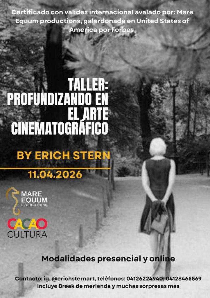 La reconocida productora internacional Mare Equum Production de Estados Unidos avala el taller «Profundizando en el Arte Cinematográfico», un evento exclusivo que otorga un Certificado Internacional USA y transforma la pasión por el cine en habilidades profesionales reales. Impartido en la sede de Cacao Cultura, este taller invita a cinéfilos, aspirantes a cineastas y creadores […]