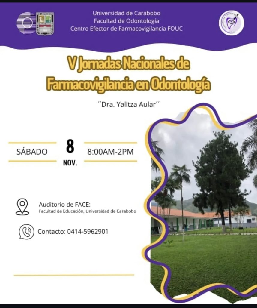 Siguiendo con la celebración de la semana mundial de la seguridad del medicamento, la Facultad de Odontología de la Universidad de Carabobo formará parte de las V Jornadas Nacionales de Farmacovigilancia «Dra. Yalitza Aular», el próximo sábado, 08 de noviembre, en el auditorio de la Facultad de Educación (FACE) a partir de las 08:00am. La […]
