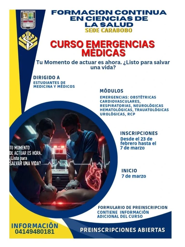 La Facultad de Ciencias de la Salud de la Universidad de Carabobo anunció la apertura del proceso de preinscripción para su nuevo curso de formación en emergencias médicas, una actividad académica avalada institucionalmente y dirigida al sector salud. El programa tiene previsto su inicio para el próximo 7 de marzo de 2026 y busca capacitar […]